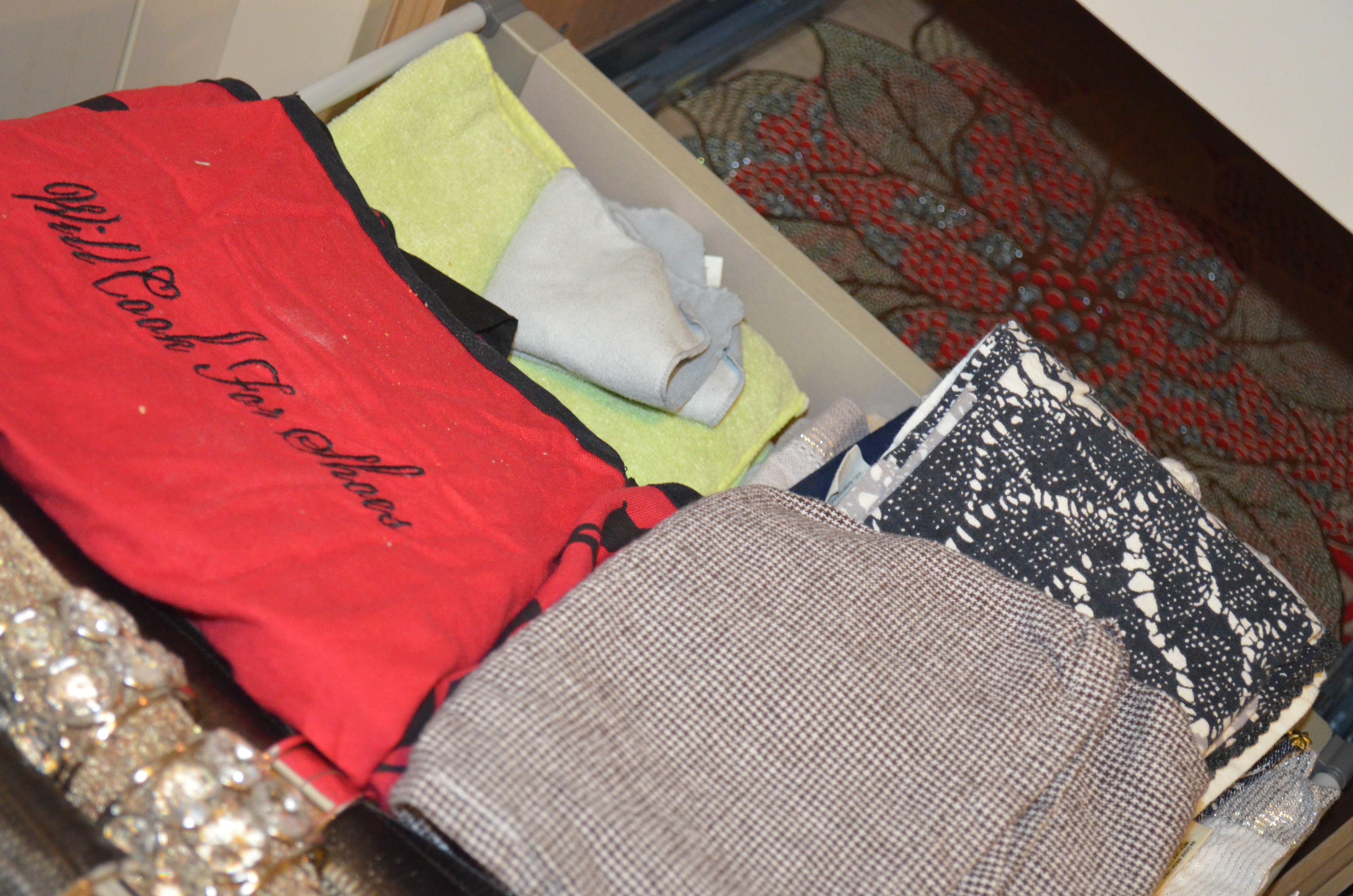 I had a bit of a freak out. I was trying to cook in the kitchen and I couldn’t find my pot holders so I reached into my linen drawer to try to find a dish towel or something that I could use to get something hot out of the oven. THIS is what I opened the drawer to: