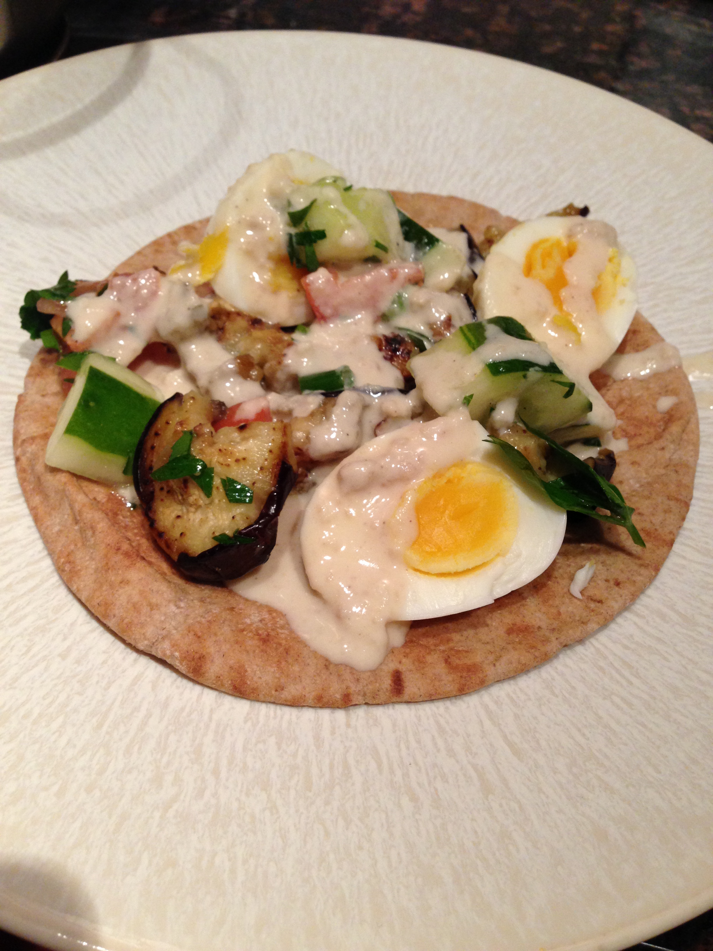 My friend hosted a little shindig for three couples last night. One confession I have to make is that I truly and completely detest grown up vegetables. I can never figure out what it is about them that I hate, but tomatoes, zucchini green beans, and things like that make me cringe. Last night my darling friend made a dish from her Jerusalem Cookbook. I dont know what it was called but it was basically pita with burnt eggplant (on purpose, apparently it’s a thing), tomatoes and cucumber with a little lemon and cilantro. Topped off with hard boiled egg and a really yummy tahini sauce. I.WAS.TERRIFIED. I was really sweating bullets but I didn’t want to be rude because it looked like a fairly complicated dish to make AND it’s just rude to go to a dinner party and not eat the host’s food! I ended up confessing my fear of vegetables to my dear friend and she just laughed and said I needed to try three bites. Its the only way you can actually decide if you like something or not. The first bite is never a good litmus test for anything. So there I was, mortified that I was being so childish, and I took my three bites. I have to say, it was pretty good. Now I am not going to go run out and eat every eggplant I see, but I am glad they made me stretch. Don’t get me wrong, my friend is a great cook so, if I am ever going to try something like that, it’s going to be from her kitchen. I just need to expand my horizons. Live a little.