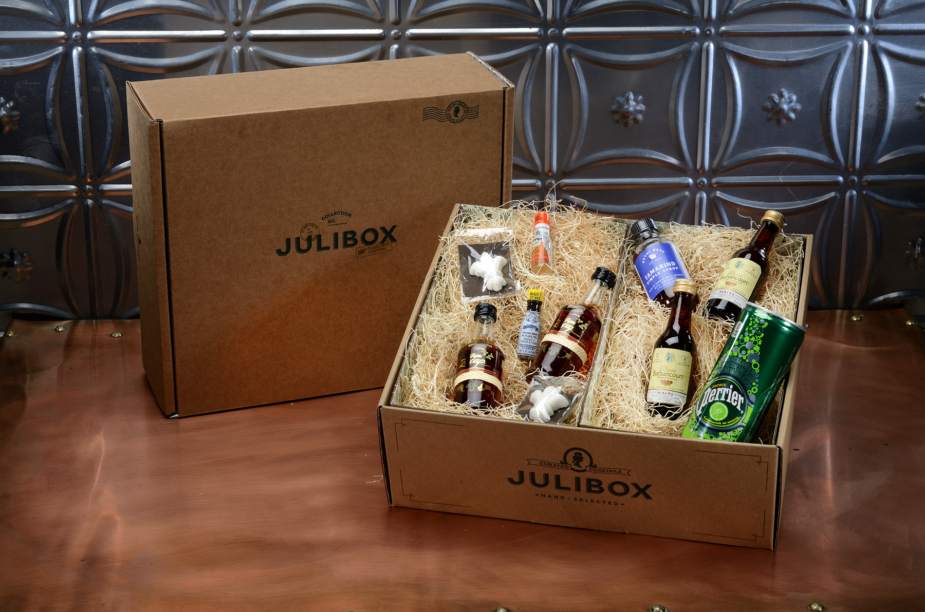 Julibox is your passport to cocktail discovery. Each month, you will discover two great cocktails, curated by world class mixologists and designed especially for easy home preparation. You’ll get enough ingredients to make two of each cocktail; four cocktails in sum. And you get all of the spirits and mixers you’ll need to make ’em.