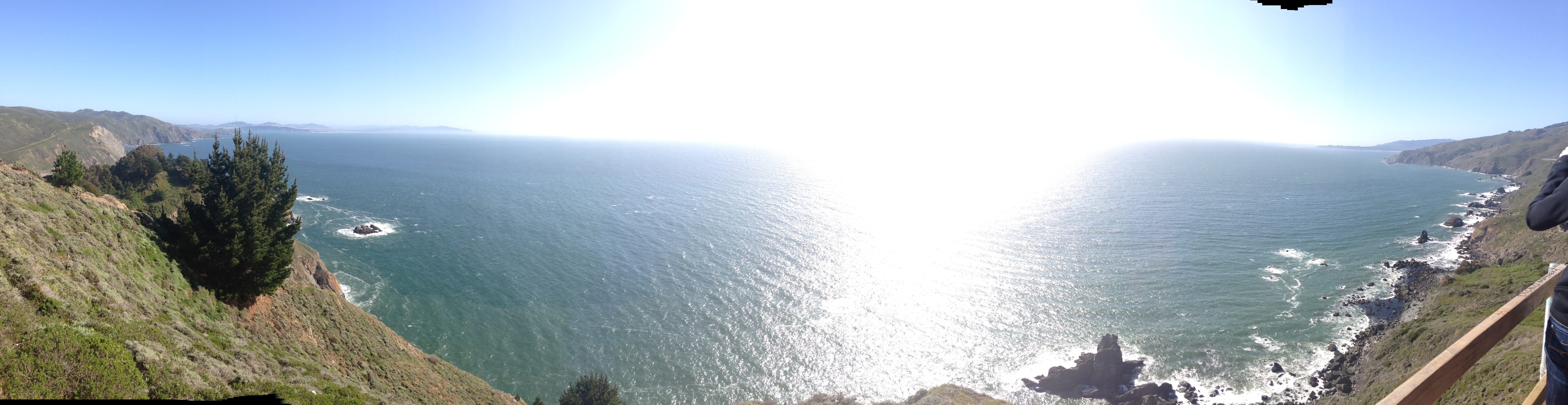 I think I spent more time outdoors on that one day than I have collectively over the past few months. Â It was terrific. Â I still don’t like bugs, or the elements, but I got my nature on so that’s all that matters. Â After Muir Woods we stopped at another gorgeous cliff where we could see the entire pacific coast. Â Another amazing view.