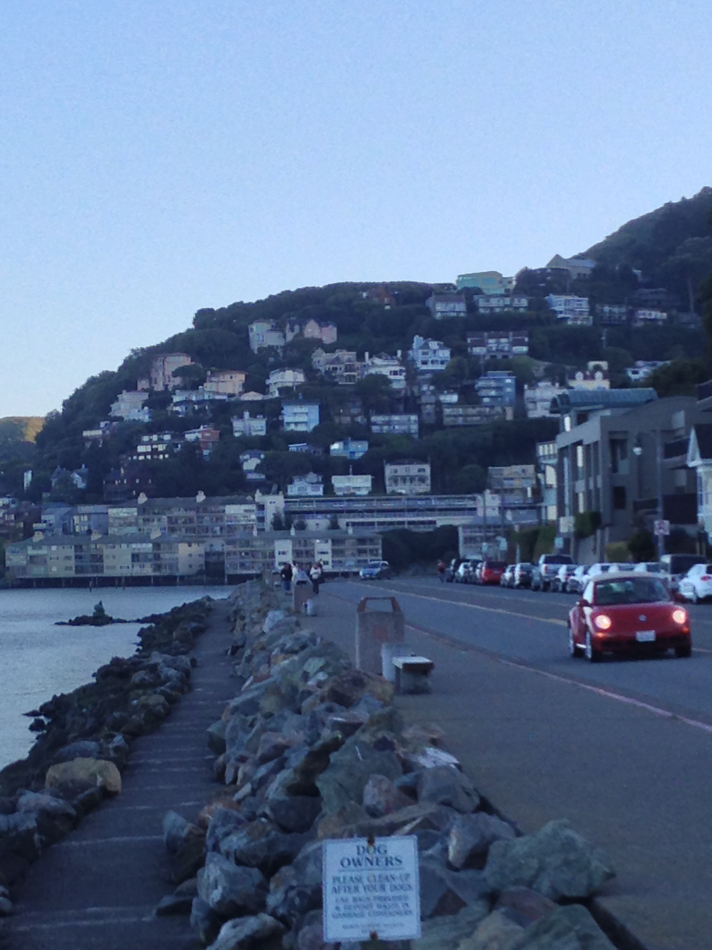 Then we made our way to Sausalito.  A tiny little town right across the Golden Gate Bridge.  It seriously looks EXACTLY like the Amalfi Coast in Italy.  The whole strip was full of little shops and restaurants.  We decided to stop for dinner instead of taking the ferry back with our tour group.  We went to a really pretty place called Scoma’s.  It is really close to the ferry so we didn’t have to worry about missing it.  The food was amazing and it looks like a little blue cottage on the water.  The views were spectacular so we watched the sun start to set with a glass of sparkling wine and good seafood.  After dinner we strolled around, shopped a little and then went to a great little wine bar across from the dock for a taste.  It was called Bacchus and Venus .  There were really nice people working there and we had great conversation while waiting. The ferry finally came and we set sail back to San Fran.  Tomorrow I’ll tell you all about Napa, because you can’t get that close to wine country and not see it!