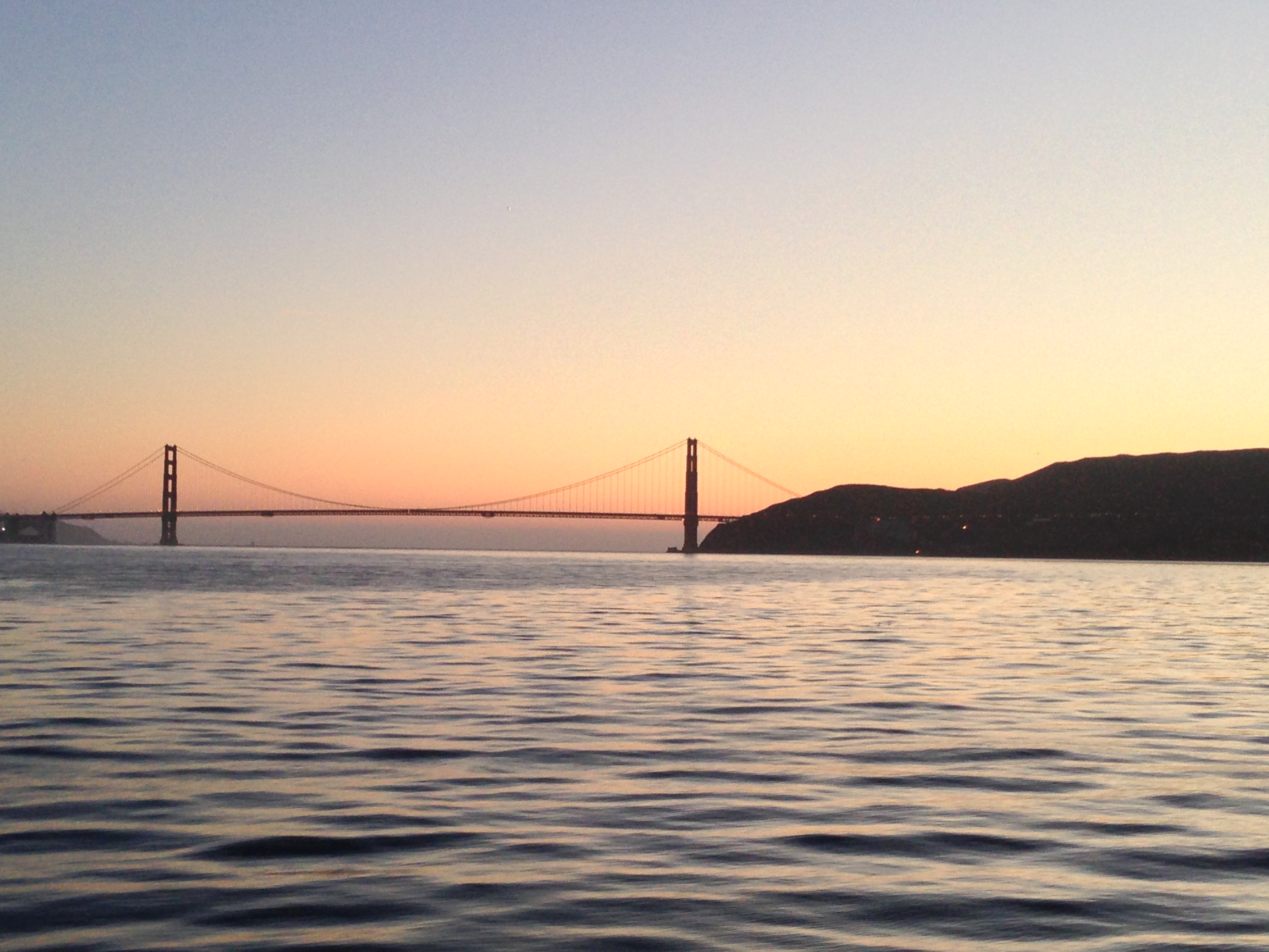 Well after about a half hour of walking in a less than ideal neighborhood in the middle of the night, we found out that the bridge we had been walking towards was NOT the Golden Gate Bridge, but the Bay Bridge. Â We were told that walking across the Bay Bridge would be a very bad idea because it is really long and all that is on the other side was Oakland, which is apparently dangerous. Â It still looked pretty nonetheless.